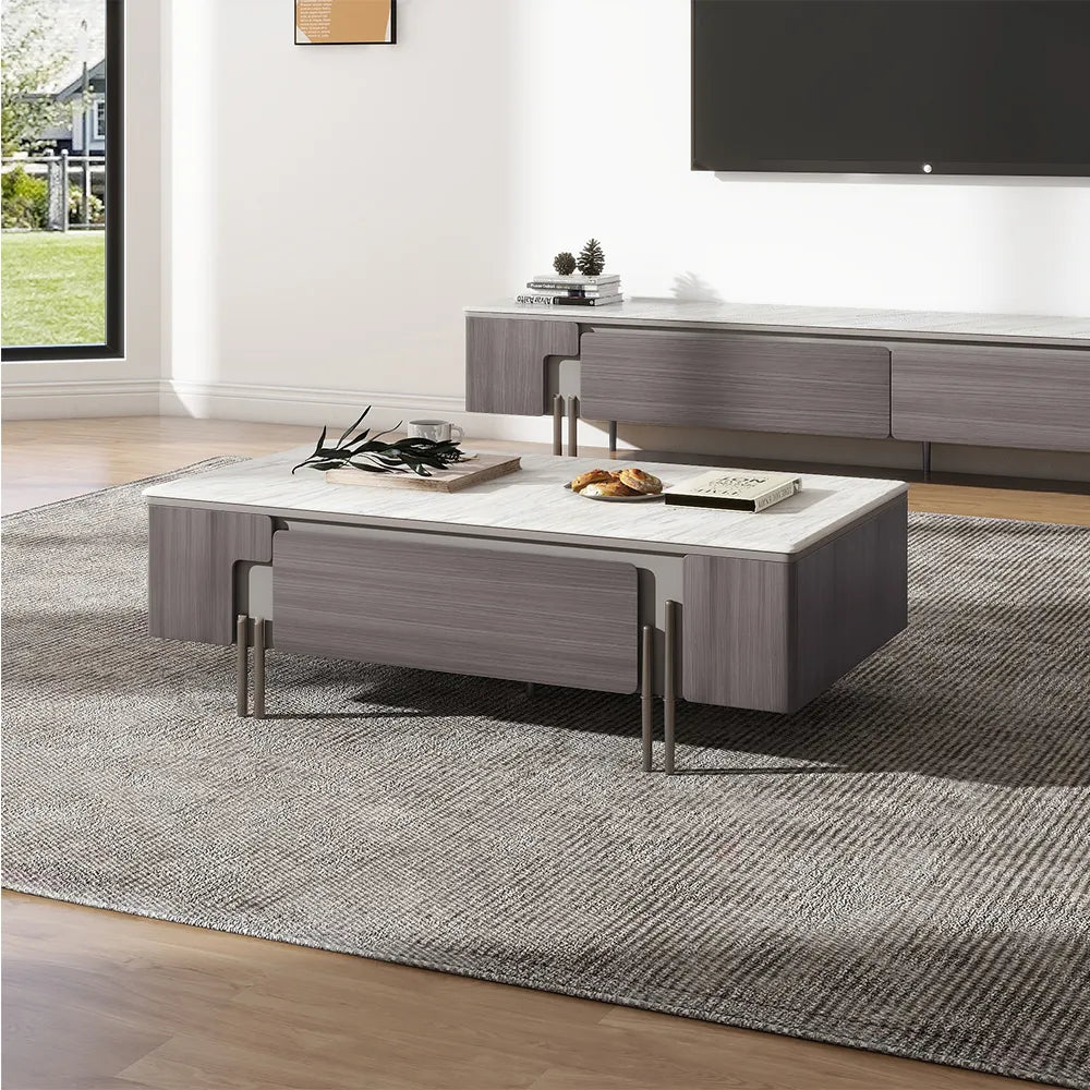 51.18" Modern Minimalist Oak Veneer Coffee Table