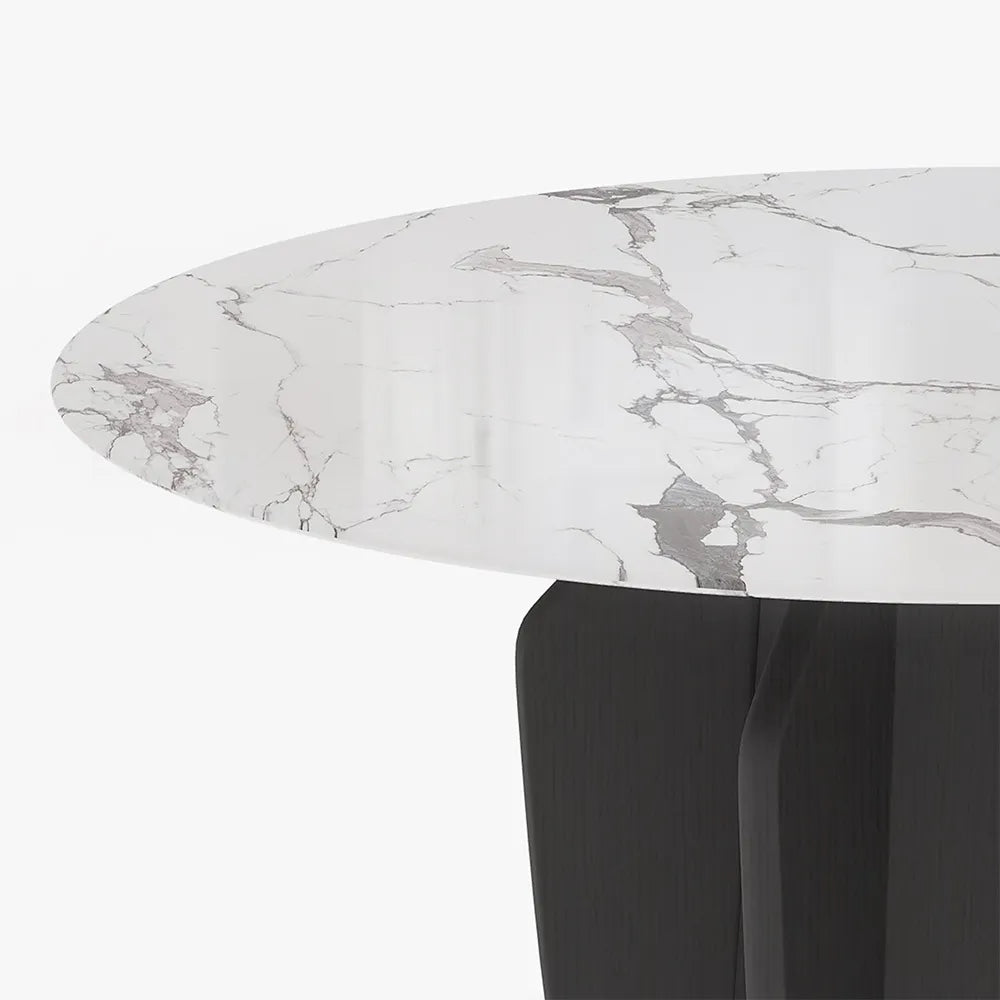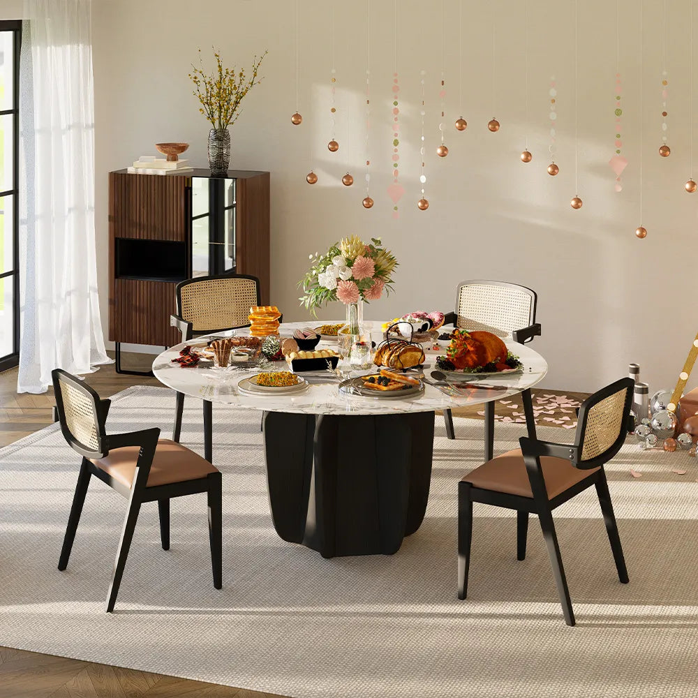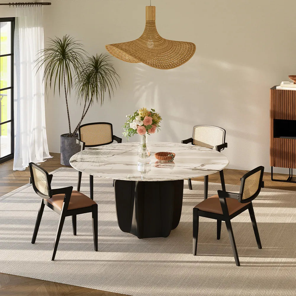 【Solid Wood Base】Solid Wood Base: Our table's solid wood base, crafted from blackened white waxed wood, exhibits an elegantly refined aesthetic. White waxed wood is celebrated for its enduring strength and longevity, epitomizing the essence of enduring quality.