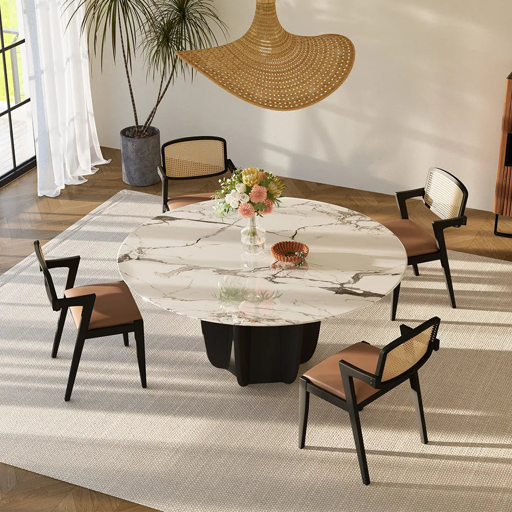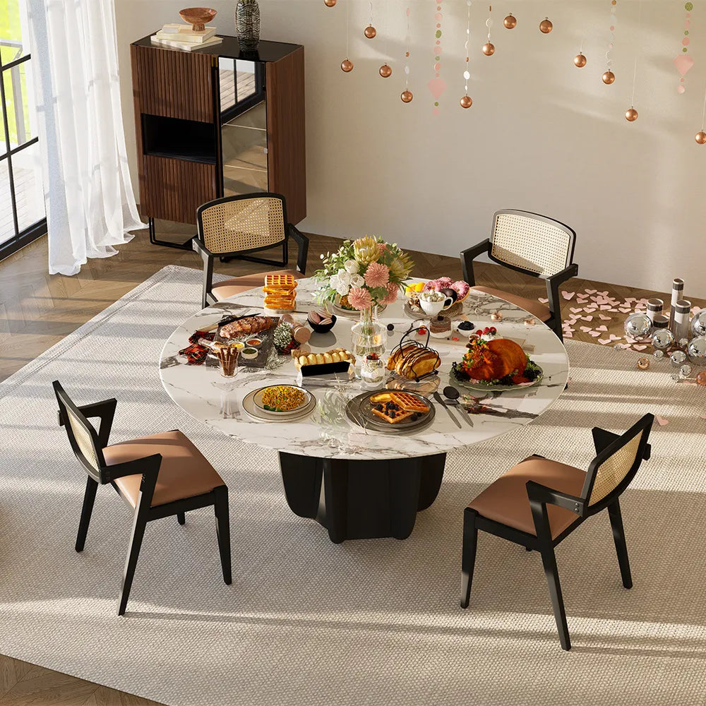 【Finely Polished Edges】Every edge of the table is meticulously polished, ensuring smooth, rounded edges that prevent scratches and collisions, guaranteeing your dining safety.