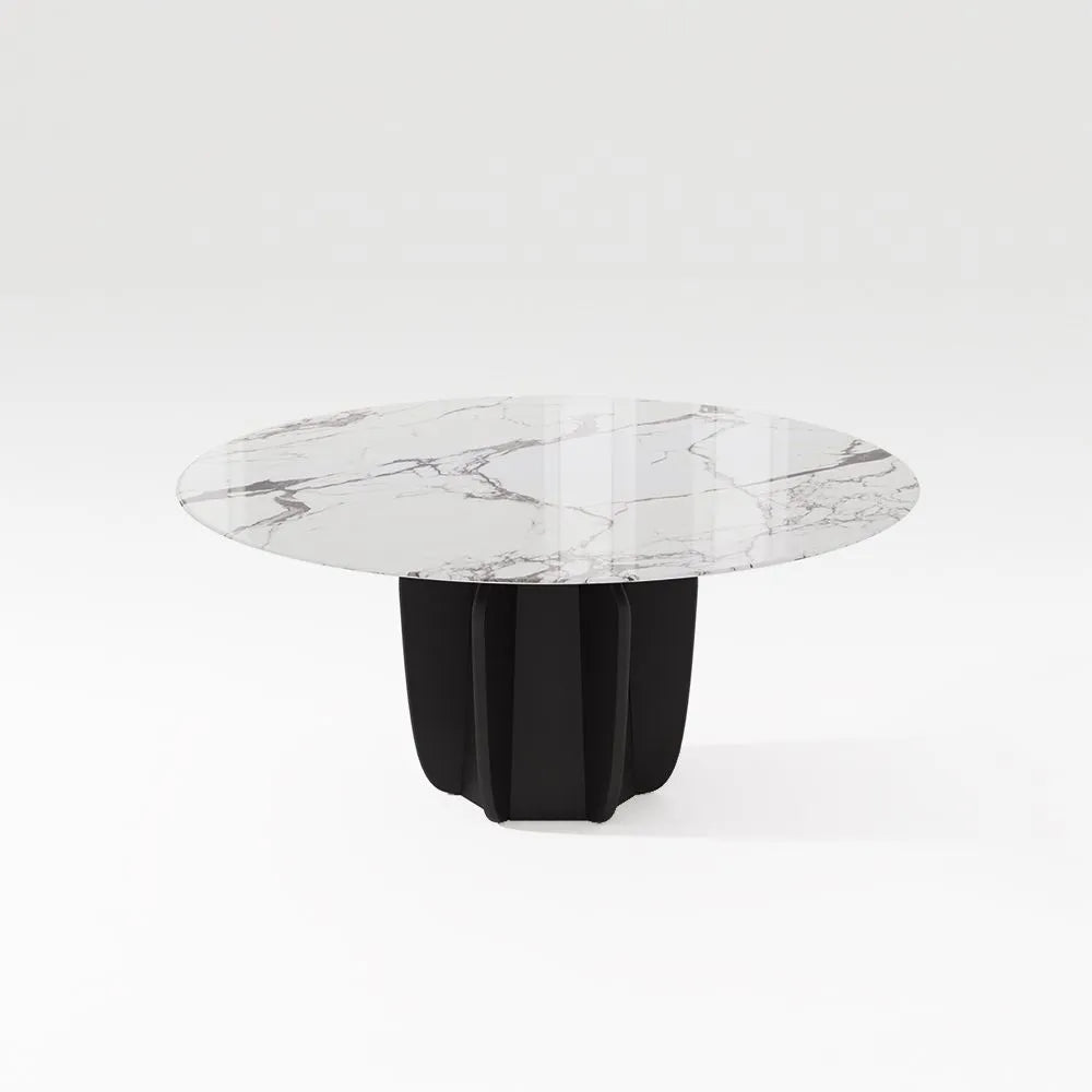 【Faux Marble Tabletop】With its unique gray-white hue and elegant natural patterns, our faux marble tabletop is not only stunning but also highly durable. It's sealed with an extra resin layer for stain resistance and heat resistance up to 100°C, making it perfect for worry-free gatherings.