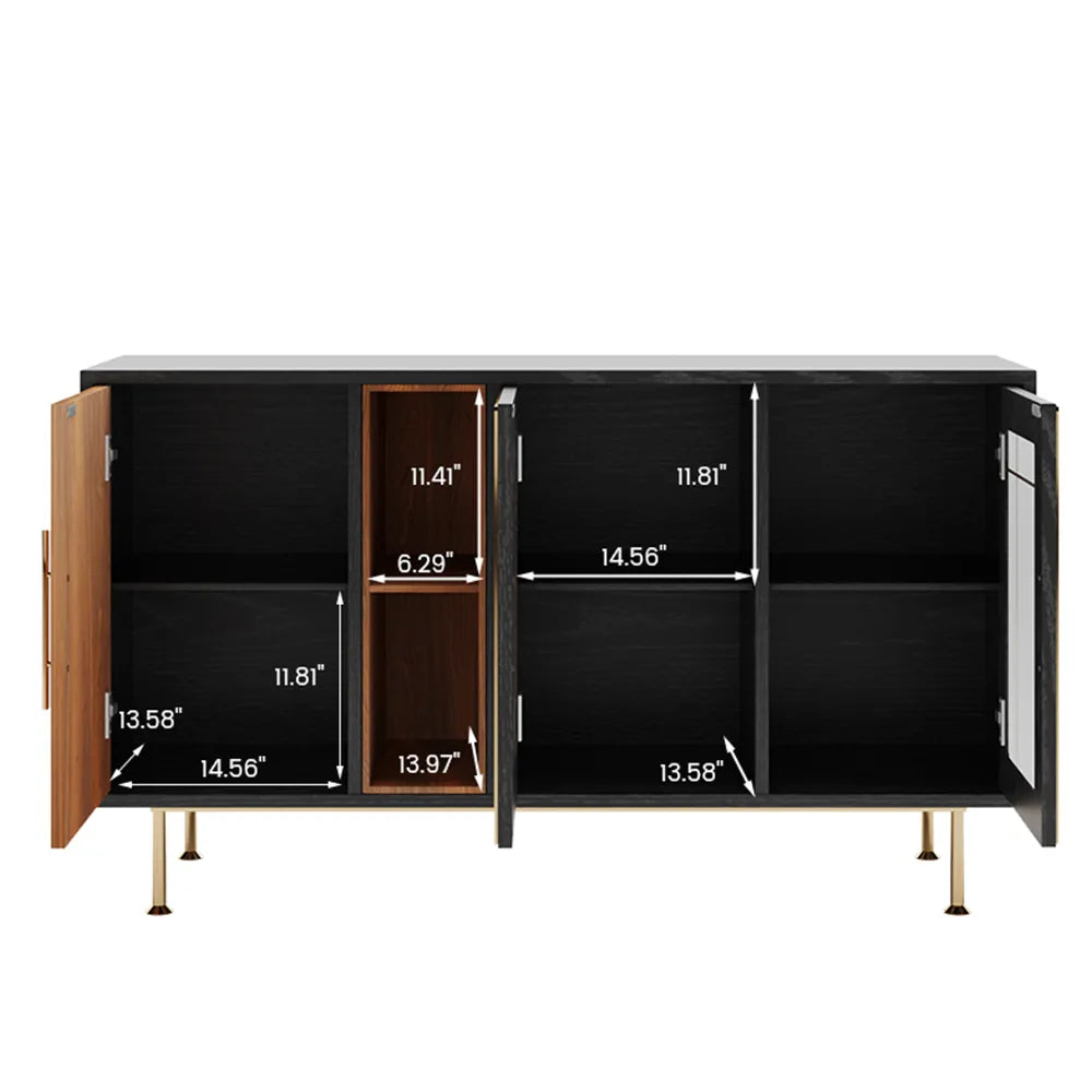 55'' Mid-Century Modern Credenza Solid Wood Sideboard Buffet Cabinet
