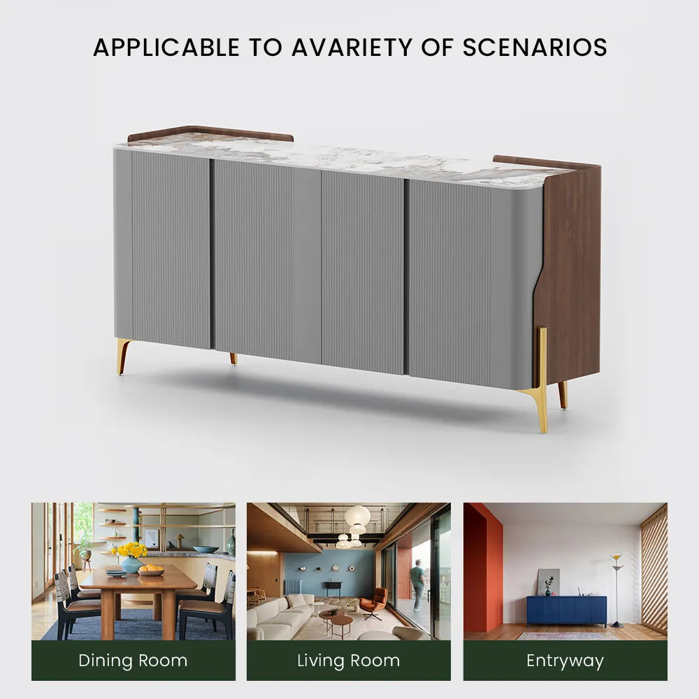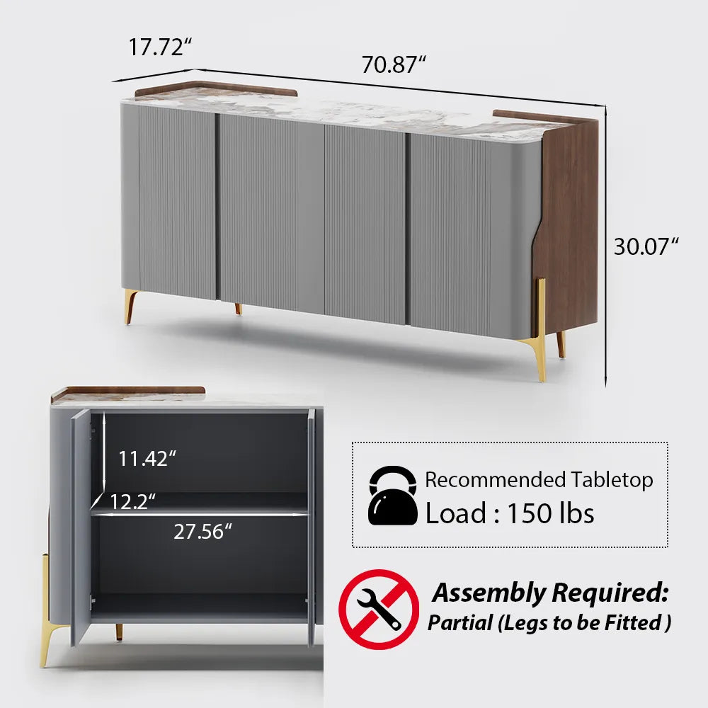 70''Modern Luxe Credenza Sideboard Buffet Cabinet With Pandora Sintered Stone Top&Storage