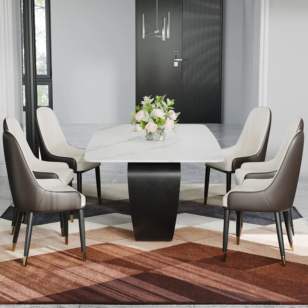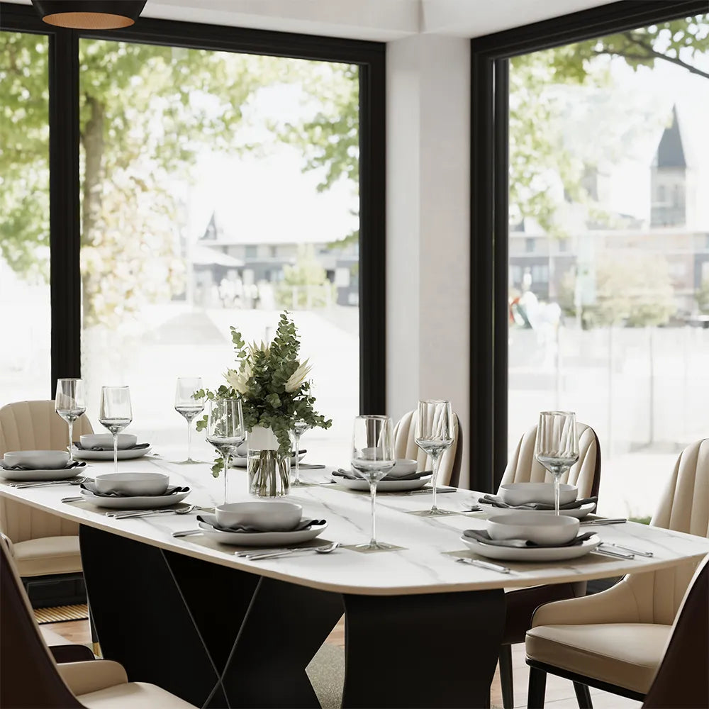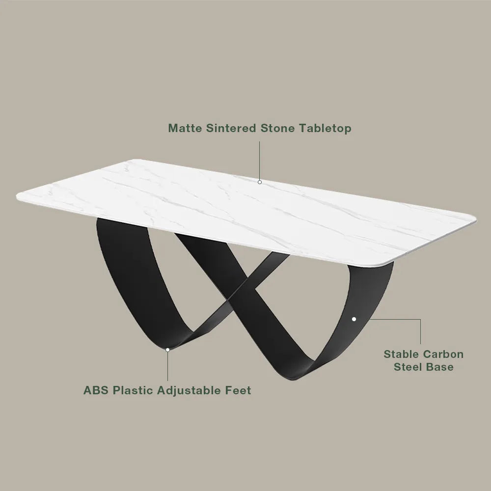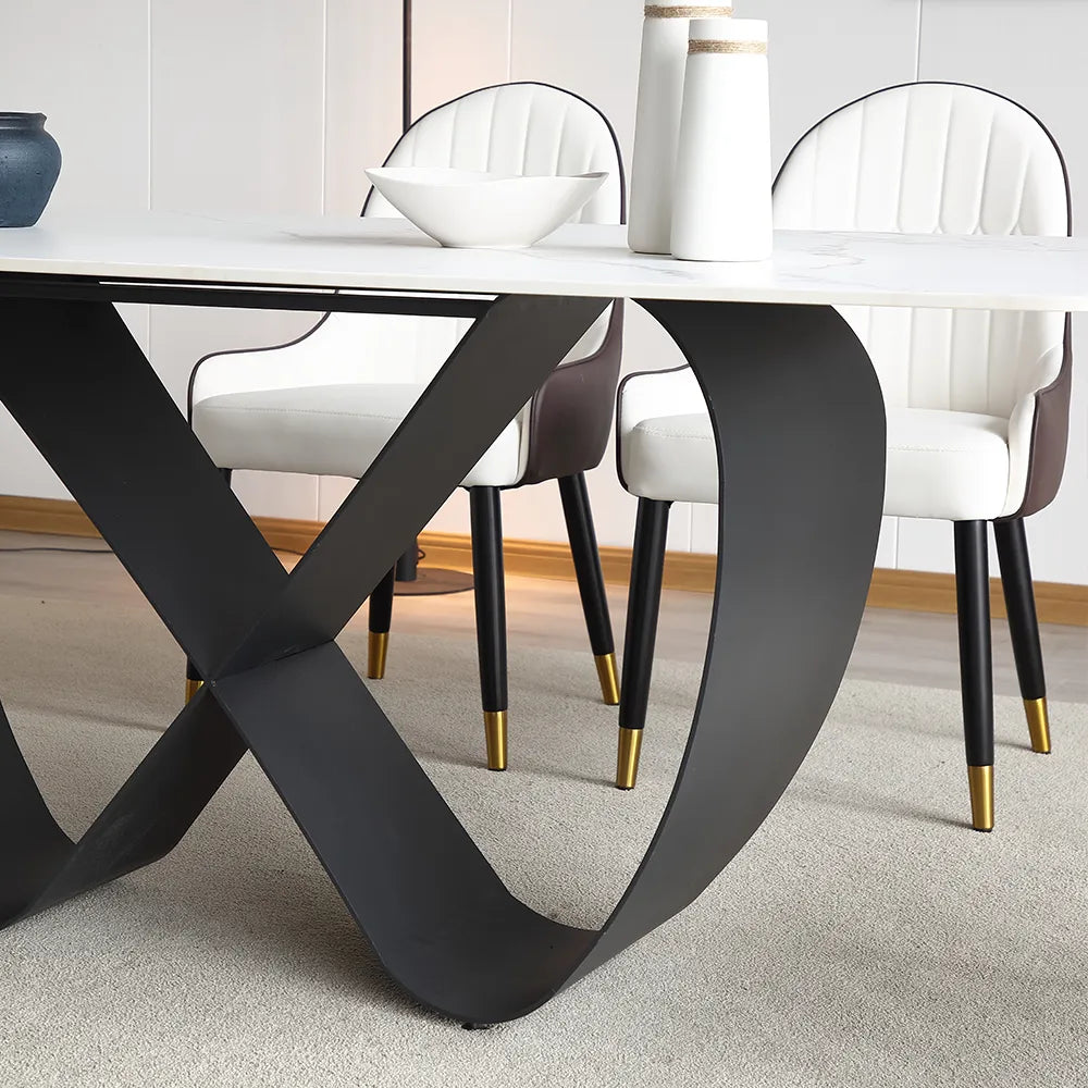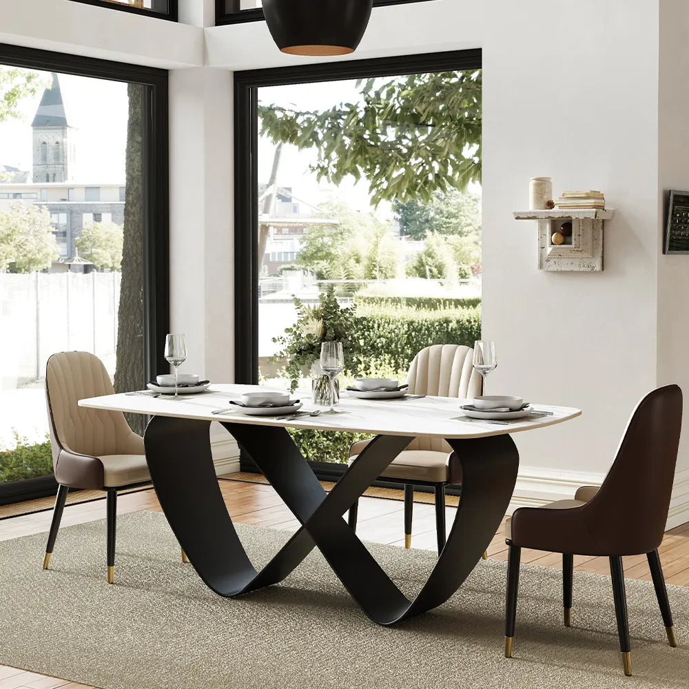 This rectangular modern dining table, made of carbon steel in the shape of a butterfly, is like an endless symbol, which represents infinite possibilities and infinite hope. It will be a good choice for a big family, and also a unique design in the modern dining room. This modern stone dining table truly reflects refined contemporary elegance. It's a striking outline, perfect for those that have a love of design and fine detailing.