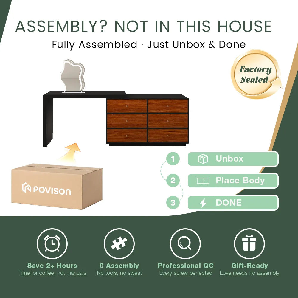 Mid-Century Modern Retractable Large Vanity Desk Set with 6 Drawers Early Black Friday